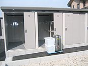 | A. | 「100人乗っても大丈夫!!」のイナバ物置を使用しています。換気ガラリが標準装備されていますが、特にデリケートな品物はドライボックスに入れて収納して下さい。 |